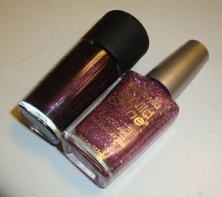 When MAC released their Style Black collection last fall, I fell in love with Baby Goth Girl. Only in the bottle though... let me explain. It is a deep black color with pink sparkles. The combination gives an overall appearance of a shimmery purple color. Unfortunately, on the nails it looks just looks purpley-black, no sparkle. At some angles in very bright lighting, you can see some sparkles, but the black polish is so opaque, that it subdues the glittery effect. The quality of this polish is the only redeeming part. This is one coat: